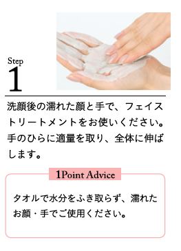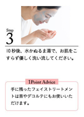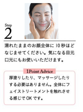 ⇒洗顔後、濡れたお顔に10秒間馴染ませるだけ、つるつる・しっとりを即実感♪